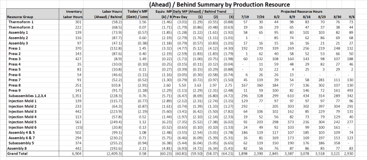 “Production Leveling helped balance our schedule. We now run smaller batches of heavier parts in the morning. My back feels much better and very little product is warehoused.”